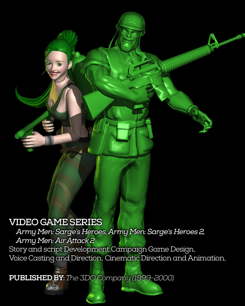 From vocal performance to full-body/facial motion capture, we have cast and directed hours upon hours of dramatic and comedic cinematic material for numerous productions for Electronic Arts, Namco, Vogster Entertainment, and The 3DO Company.